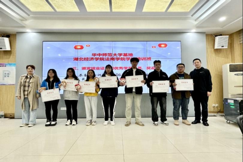 培训基地、湖北经济学院法商学院第二期培训班结业典礼在法商综合楼111室顺利举行,党委副书记、副院长杨宏斌、学工部副部长胡珍妮及授课教师代表张凡、班主任何文静和全体参训学员参会。