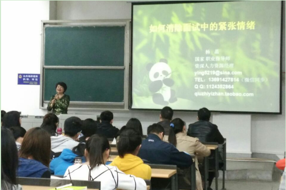 讲座上,杨老师用幽默的讲课方式给大家做讲解,并与在场学生互动,全场气氛活跃。杨老师甚至把准备面试比喻成追女朋友,意在强调准备的重要性。杨老师强调,在面试过程中,紧张的情绪实质上是源于准备不足,因此,在面试之前需要做好充足的准备,比如在语言上、服饰上和物品上。只有知己知彼,才能百战不殆。此外,面试中处理紧张的最好方法就是开怀一笑,微笑是面部最好名片。