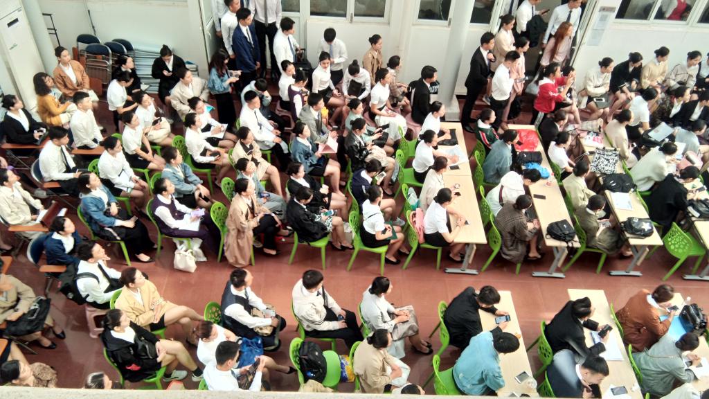 招聘大厅B112、B111、A101、A201进行。此次招聘会是海南航空及海航集团旗下十家航空公司乘务员联合招聘,工作地点分布在北京、天津、海口、杭州、长沙、太原、广州、深圳、三亚、西安、乌鲁木齐、大连、南宁、福州、上海、哈尔滨等城市。现场考核环节:初选→英语测试→复选→终选→心理测试→资格复核→公文呈报→体检→综合评审→政审→培训→签约。