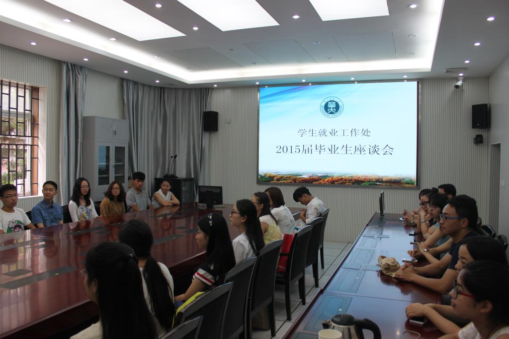 包括就业处学生助理在内的25名2015届毕业生代表参会。与会期间,学生助理们围绕提高用人单位服务质量、强化学生助理选聘管理、优化值班时间安排、提升就业处学生助理形象、加强院系与就业处沟通等问题进行了互动讨论。