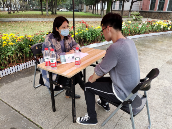 前往咨询的不仅有对学业尚有疑惑的大一学生,也有对未来迷茫的大四学生。来自文学院的吉同学正在选择实习与考研之间犹豫不决,她就此困惑向梁皓东老师展开咨询。吉同学想要去枫叶学院实习,也想要去孔子学院体验两年。与此同时,她目前仍然不清楚自己的考研方向,想要工作两年后再考研。在实习方面,梁皓东老师认为枫叶学院是一个不错的选择,花费两年在孔子学院体验耗时过长,建议吉同学缩短时间;在考研方面,梁浩东老师建议吉同学就考研方向咨询学长学姐,同时尽早考研。最后,梁皓东老师说道:“去体验,路会越来越多。”梁皓东老师的建议使吉同学明晰在实习和考研应该怎样去选择,也让她明白了要勇敢地探寻自己的人生目标。