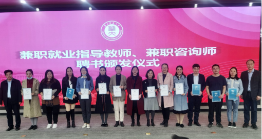 兼职就业指导教师、兼职个性化咨询师聘用决定》,并由彭校长等领导为本次受聘人员颁发聘书。