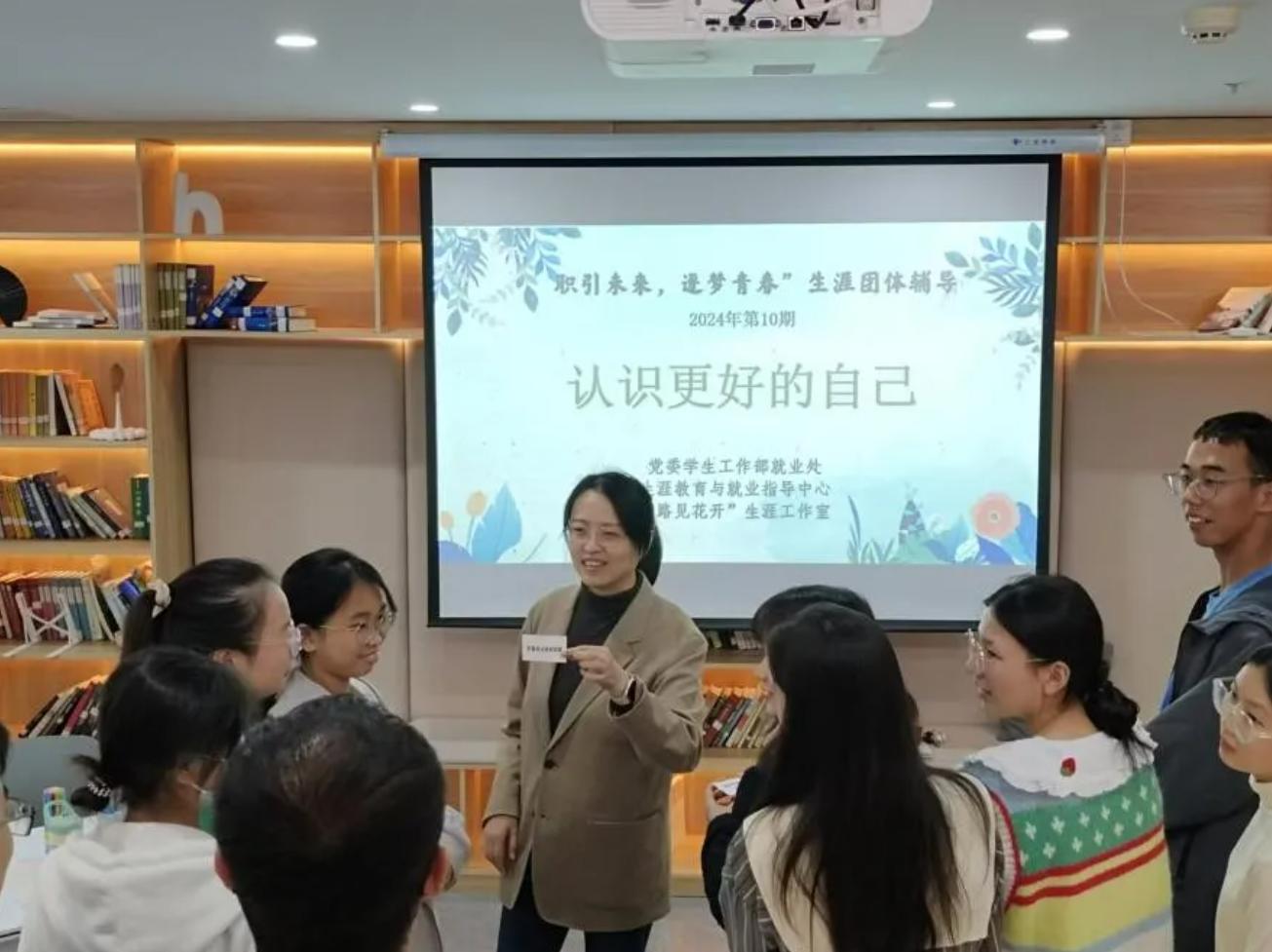 10月25日下午,由党委学生工作部就业处、“路见花开”生涯工作室主办的第十期“职引未来 逐梦青春”生涯团体辅导之“认识更好的自己”在东区18栋一站式学生社区顺利开展。