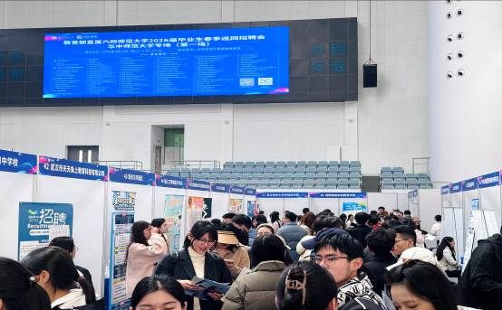 基础教育板块中,武汉经开外国语学校、红安县第一中学、随州市第一中学、广州外国语学校、广水市第一高级中学、广西师范大学附属中学、四川省科学城春蕾学校等多所名校设立展位,与师范专业毕业生就岗位需求、职业发展等展开深入交流。同时,中建海峡、科大讯飞、中建科工、中国人寿、招商银行、新东方等知名企业也带来了丰富的岗位选择,满足了毕业生多元化的职业发展需求。