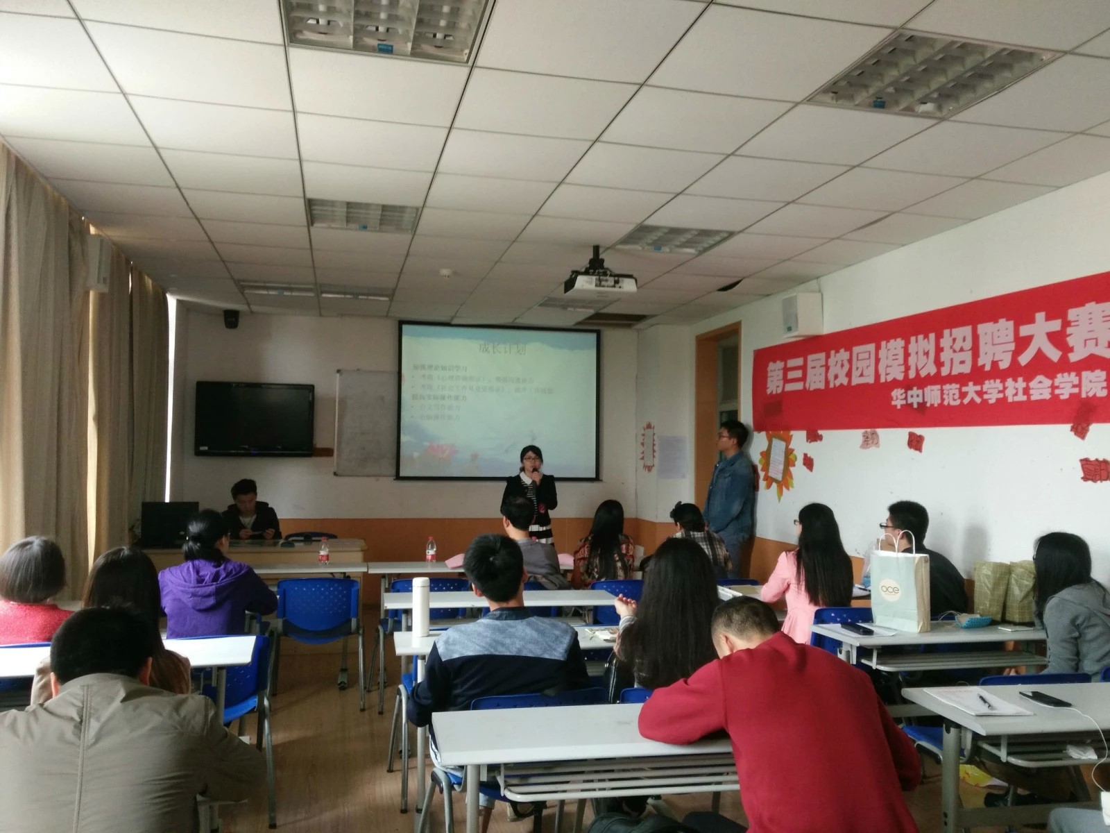 4月8日下午,由社会学院研究生会综合服务部主办,旨在增强研究生的心理素质和应聘技能而展开的第三届校园模拟招聘大赛在3号楼六楼MSW教室如期举行。经过前期初赛的简历筛选,共有8名同学进入决赛。担任此次模拟招聘大赛的评委有社会学院党委书记汪继平、副院长万仁德、研究生辅导员翟娟老师、博雅社工机构马乐老师、14级社工专业黄珍妮同学,社会学院14级全体在校研究生出席了本次活动。