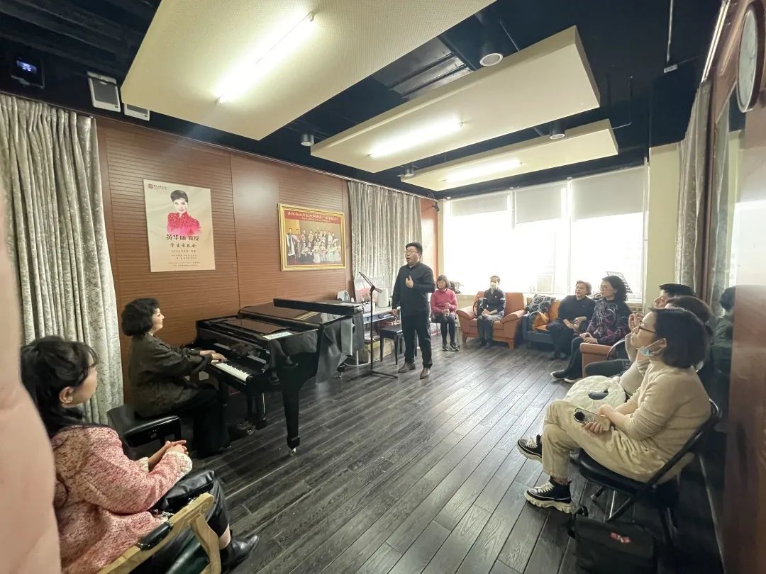 3月6日下午,詹艺虹一行赴中央音乐学院教学楼个别课工作室,观摩校友、声歌系黄华丽教授的声乐小课。观摩课程结束后,詹艺虹一行与音乐学系蒲方教授进行座谈交流,蒲方教授就专业评估、国家一流专业建设、如何促进教师科研能力、当前音乐界出现的热点问题进行解读并给出诸多宝贵建议。3月6日晚,詹艺虹一行与音乐周报编辑徐丽梅老师座谈交流。