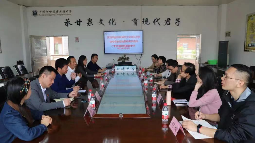 3月9日上午,考察组一行前往广州市增城区新塘中学调研交流。新塘中学党总支书记、校长韩焰明,校党总支副书记、副校长谢凤妮,副校长张展辉,教研处主任马景广,办公室副主任朱文渊,团委代理书记、音乐学院2006届校友朱昊,音乐科科组长饶夕阳参加座谈会。韩焰明介绍了新塘中学的校史、办学特色、发展现状以及音乐科组在高考和教学活动中取得的成就。朱昊从师德、业务能力、教育教研、辅导学生、德育管理等方面介绍了自己工作中取得的主要成绩,他表示,自己将继续秉承“忠诚博雅 朴实刚毅”的华师精神,坚守在教育一线,不忘初心,砥砺奋斗。双方就毕业生就业情况、音乐教师专业发展、基础教育教学与本土甘泉文化深度融合等话题进行了深入交流。
