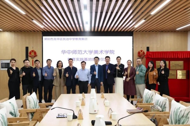 同时,为给美院学子提供优质的实习实践平台,基于前期的交流及工作基础,美术学院与民治中学等5所学校共建教育实践基地。深圳市龙华区教育科学研究院党支部副书记、工会主席周东、深圳市龙华区民治中学教育集团党委委员张群辉、工会副主席姜金波,民治中学教育集团教师发展部部长、初中部负责人戴蓉、民新学校工会主席夏旸、深圳市龙华区第三实验学校党总支“夯基提质工程”副书记、工会主席邹建辉等出席活动,对华中师大美术学院为龙华区教育输送了众多美术人才表示感谢,并期待在接下来的合作中,共同为龙华美术教育的高质量发展助力。
