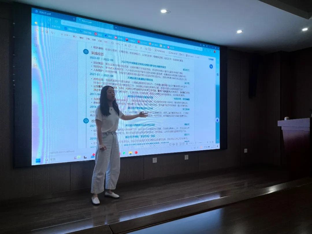 一份精心准备的简历是踏上职场之路的开始。好的简历需要以个人储备为基,也讲求撰写的技巧。为帮助同学们更好地掌握简历撰写与打磨的技术,提高学生的就业竞争力,5月21日下午,2023级社会工作硕士简历制作主题班会在文科科研楼北楼410会议室召开,本次班会由辅导员翟娟老师主持,2023级社会工作研究生班全体同学参会。