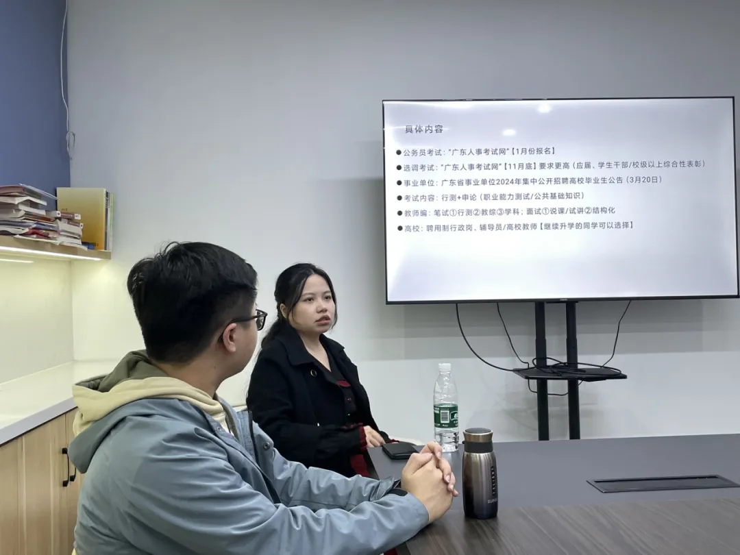 答疑结束后,分享会进行至港澳台侨就业分享阶段。陈祈珍以2020年文件《粤港澳大湾区(内地)事业单位公开招聘港澳居民管理办法(试行)》为例,详细讲解了港澳台生求职的基本路径、具体内容以及材料准备等,以就业清单的形式为有志于求职的学生们初步搭建起了通往职场的路径。
