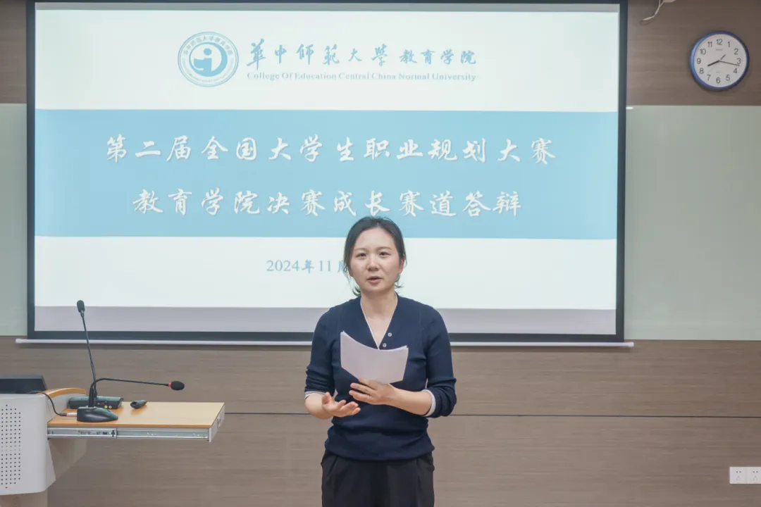 本次大赛的主题是“筑梦青春志在四方,规划启航职引未来”,分为“成长赛道”和“就业赛道”两个竞赛方向。成长赛道由教育学院党委副书记王璐,就业处生涯发展主管、专业生涯咨询师卢雯,本科生2023级辅导员王诗薇,本科生2024级辅导员史磊担任评委,张晓瑜主持活动。就业赛道由教育学院党委副书记苏春艳,社会学院生涯教育中心主任、湖北省高校毕业生就业创业指导专家郭京骁,研究生辅导员张萌,研究生辅导员陈梦雨担任评委,王利娜主持活动。