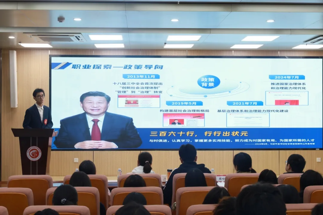 成长赛道中,来自本科大一到大三年级的6名参赛选手们结合自身专业特点和兴趣爱好,从目标设立、自我认知分析、职业环境分析、实践成果展示、评估与调整等多个方面展示自己对未来的憧憬与规划。就业赛道的6名研究生选手从个人学历背景、职业匹配度与个人适应度、未来发展规划方面入手,着重展现了个人丰富的工作、实习经历如何助力自己达成目标岗位。