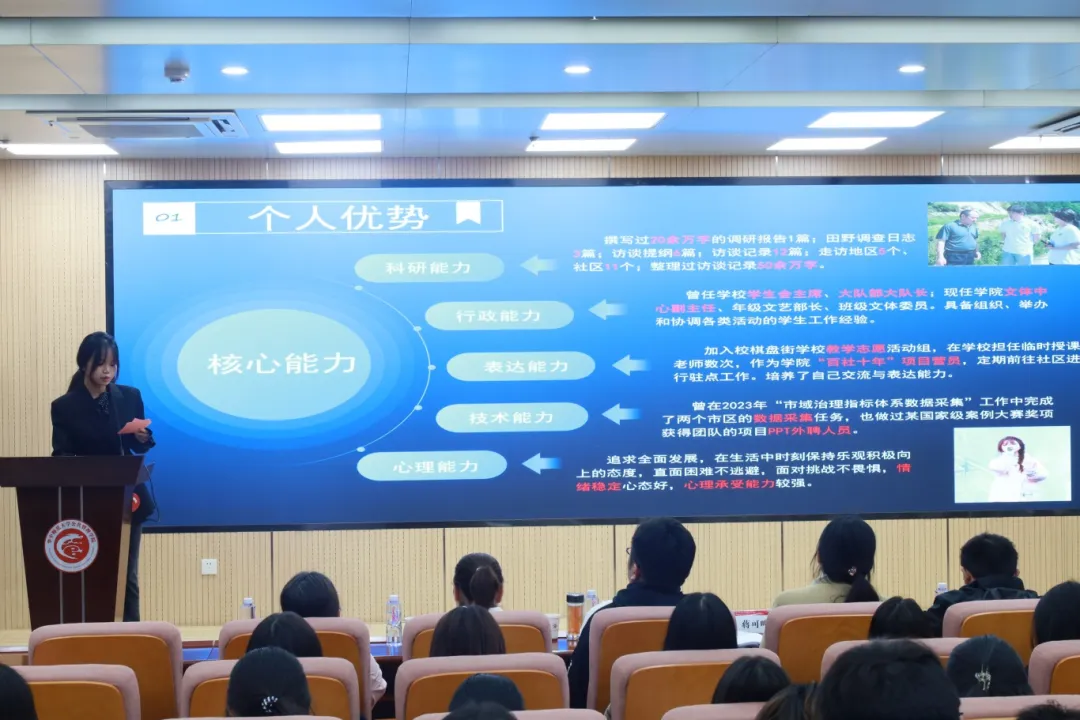 据悉,学院自11月4日启动院赛以来,各年级辅导员利用晚点名动员宣讲,共有本科生、研究生共三百多名学生报名参加。经过学院初评,各有6位选手入围成长赛道和就业赛道的终审展示。为进一步帮助选手熟悉比赛规则,优化比赛文案,11月18日晚,学院邀请经济与工商管理学院辅导员、生涯咨询师、职业生涯规划师赵万为选手们做了赛前培训。
